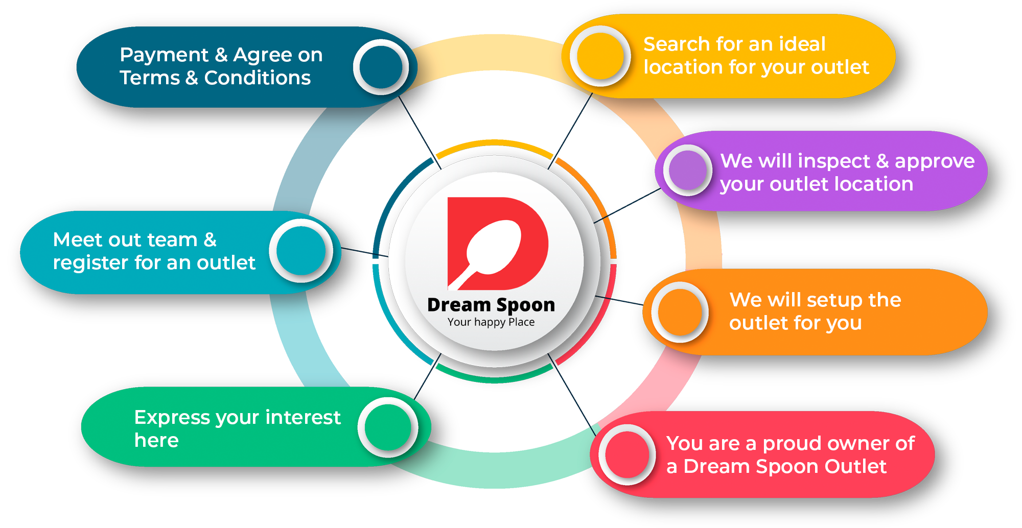 Owning a Dream Spoon franchise can be a very lucrative business. Under the Dream Spoon food franchise business, companies get investors who are known as franchisees and allow them to use the company name and its products. The store or outlet needs to be in a prominent location where there is a lot of footfall to attract a greater number of investors. Towards this end we invite young, innovative, enthusiastic entrepreneurs to join us.